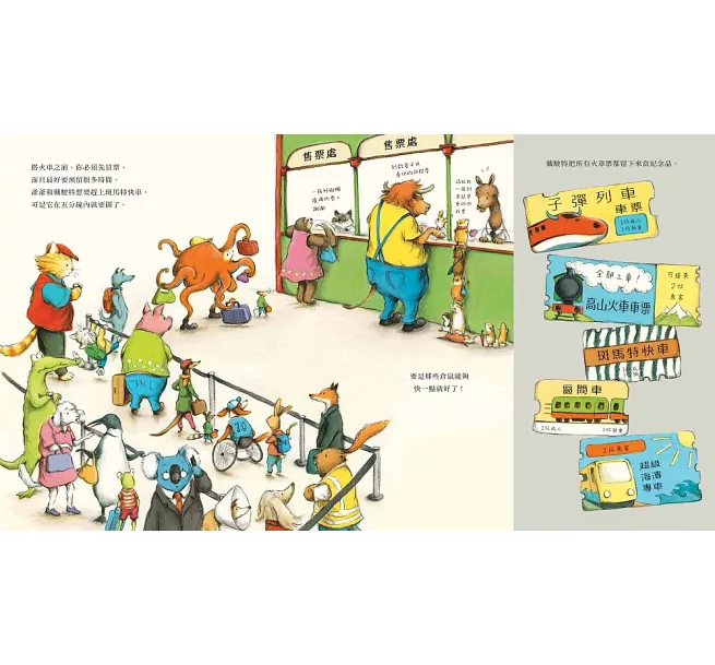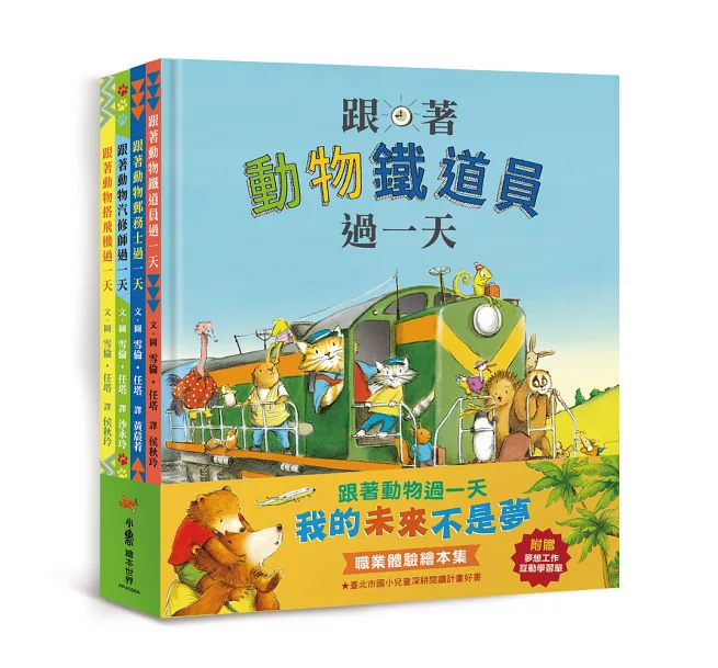 跟著動物所扮演的鐵道員、汽車維修師、郵差、機場營運員一起度過工作日,從故事中將帶領孩子體驗四種職業的工作細節與職業內容,以及可能會接觸到的人事物,對喜愛小動物的孩子來說,沒有什麼比動物的故事更吸引人的了!