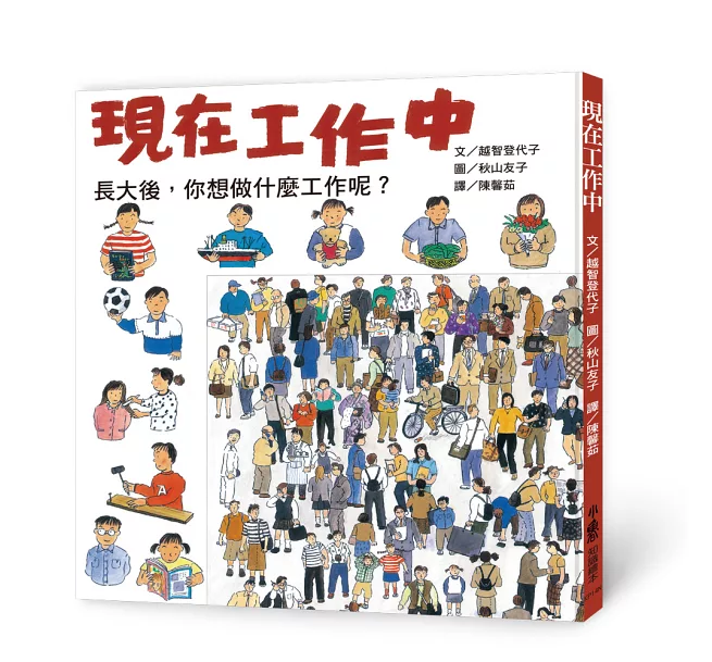如果說「長大後你想做什麼工作」是入門版,那麽「現在工作中」就是進階版了。書中針對社會上比較常見的職業,總共有玩具屋老闆、花店老闆、廚師、蛋糕店的師傅、美髮師、醫生、護士、救護人員、車掌、土木工程師、董事長、公司職員、刑警、歌手、播報員(運動播報員)、舞臺導演、時裝模特兒、服裝設計師、動物園的飼育員、職業足球選手、保母、漫畫家、木匠、圖書館館員、船長、農夫、漁夫、小學老師、藥劑師、氣象預報員、營養師、大學教授、領隊、電玩遊戲軟體設計師、公務員、律師、上班族、社工人員、作家、畫家、編輯、翻譯…30種職業。